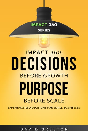 Impact Impact 360: Decisions Before Growth, Purpose Before Scale is written for small business owners and founders standing at the point where momentum starts to build, but clarity has not yet caught up. It focuses on the decisions that quietly lock businesses into future paths long before scale, investment, or complexity arrive. Drawing on experience rather than start-up mythology, the book challenges the idea that growth should always be the goal. Instead, it asks harder questions about purpose, capacity, cash, credibility, and personal cost. It explores how early choices around customers, pricing, systems, and workload often determine whether growth becomes freedom or constraint. This book does not promise shortcuts or rapid scaling formulas. It offers judgement-led thinking for founders who want their business to work in real life, not just look good on paper. It encourages readers to slow down at the right moments, make decisions consciously, and build something they can sustain. Decisions Before Growth, Purpose Before Scale is part of the Impact 360 series, bringing the same experience-led thinking into the realities of small business and founder-led environments.